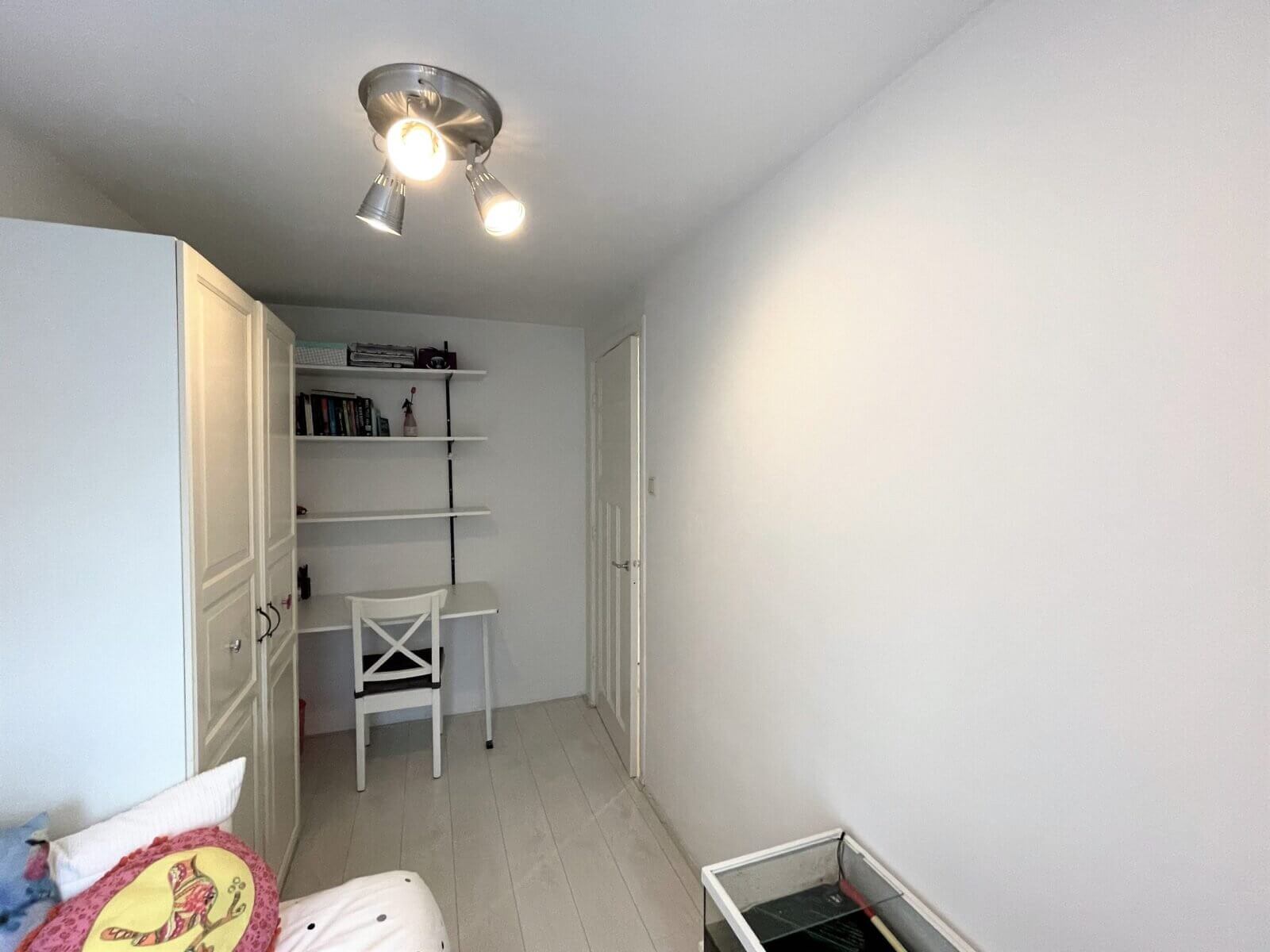 In het midden van deze verdieping bevindt zich de 1e badkamer en aan de achterzijde bevinden zich de aparte werkkamer met groot balkon en dichte keuken met tevens toegang naar het balkon.