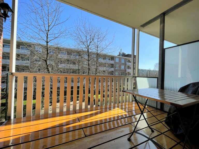 Het ruime balkon/terras is vanaf het voorjaar tot de herfst echt een verlengstuk van de woonkamer en maken dit fijne appartement compleet.