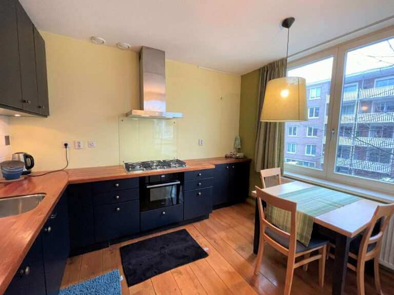 Het appartement is gunstig gelegen in het steeds populairder wordende Bos & Lommer met hotspots zoals Het Wilde Westen, De Biergrill en theater Podium Mozaïek.