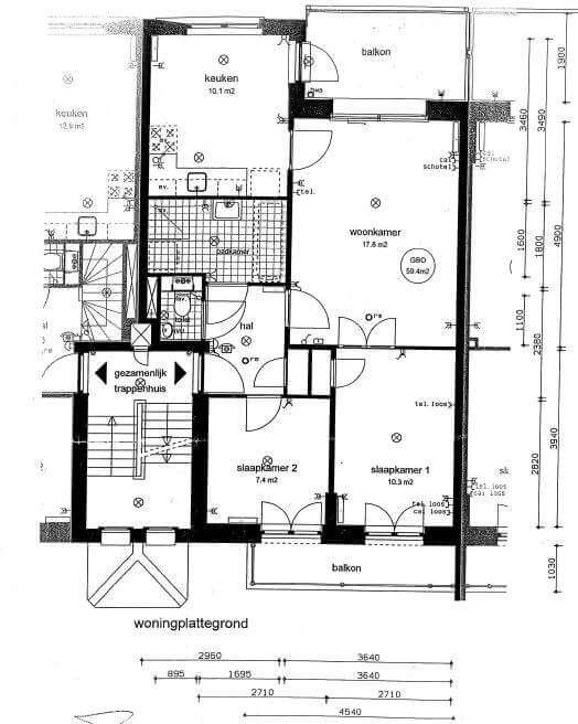 3 kamer (2 slaapkamer) appartement met balkons aan voor en achterzijde (oosten en westen). .