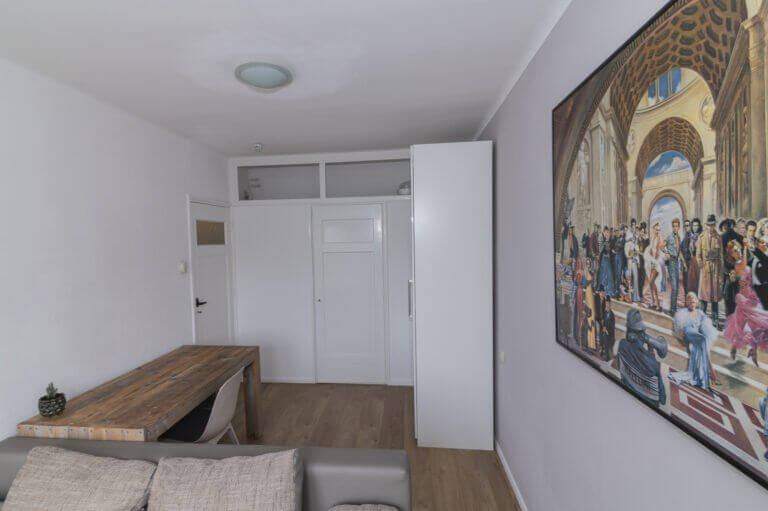 In dit appartement zijn er 2 ruime slaapkamers aanwezig. De vide is momenteel in gebruik als master bedroom en de 2e slaapkamer als logeerkamer. Deze biedt voldoende ruimte voor een bed en kast. Ook is deze kamer ideaal voor een kastenkamer. Beide kamers zijn voorzien van voldoende daglicht en afgewerkt met dezelfde strakke laminaatvloer.