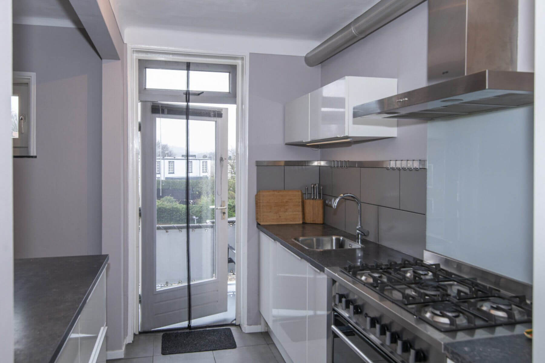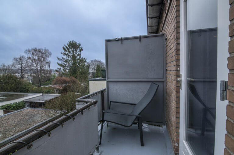 Het balkon, met een vrij uitzicht, is aan de achterzijde van de woning gelegen. Toegang via de keuken.