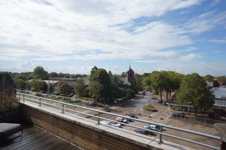 1 slaapkamer appartement met dakterras, licht, ruimte en vrij uitzicht, in karakteristiek gebouw met lift en boven een winkelstrip.