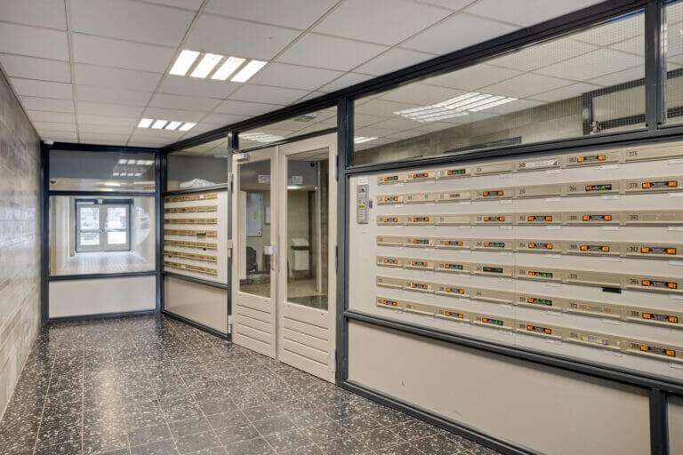 Een verzorgde centrale entree met brievenbussen en bellentableau. Toegang tot de liften en berging.