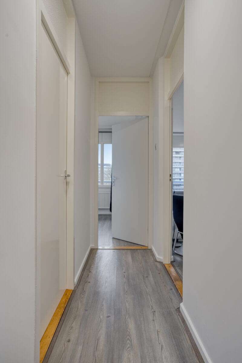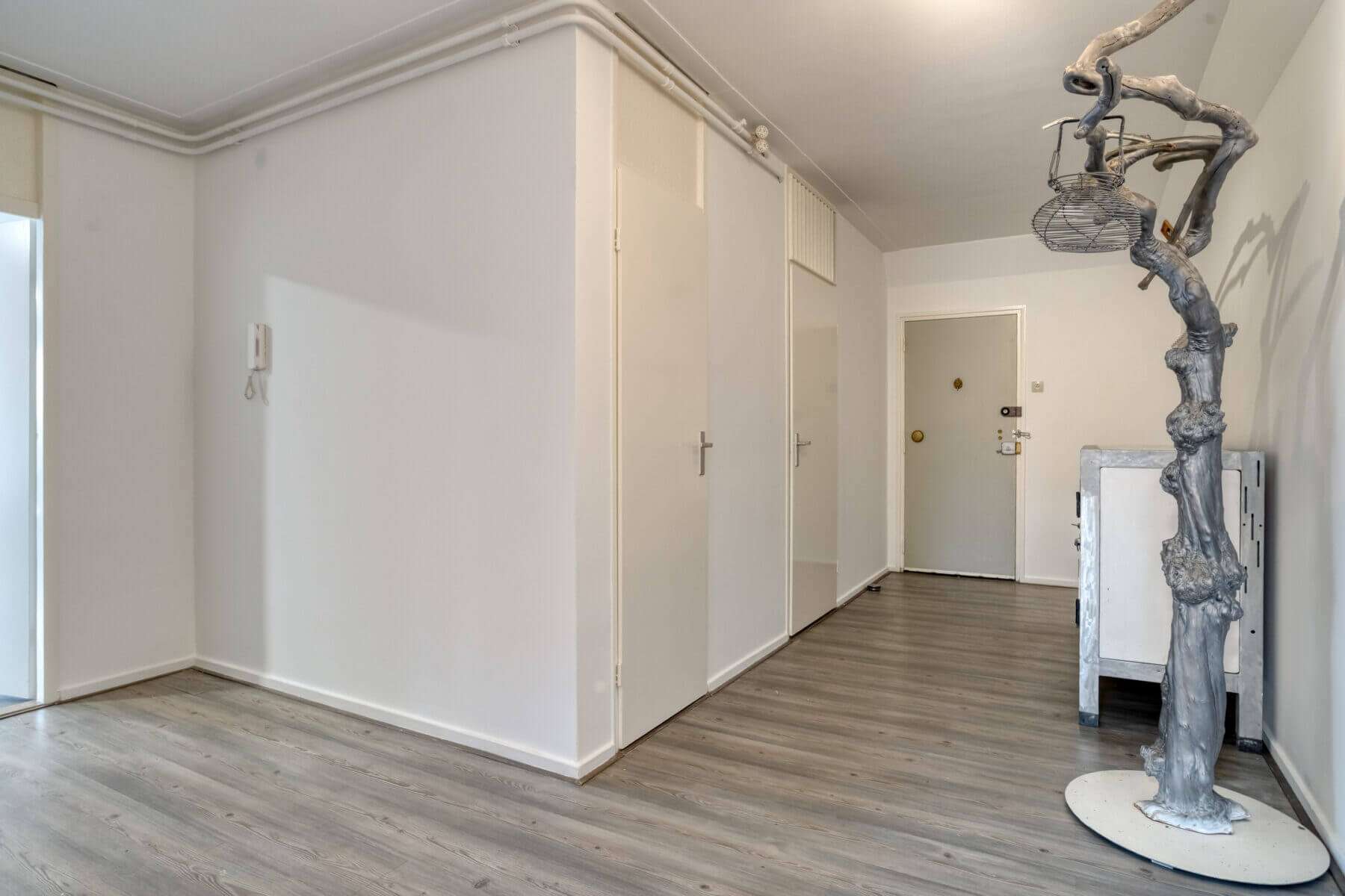 Entree, zeer ruime hal met inpandige grote berging met wasmachine. Het appartement beschikt over een intercom voorzien van een videofoon. Vanuit de hal heeft u toegang tot de keuken, het toilet, de badkamer en de woonkamer. De royale woonkamer heeft veel lichtinval door de grote ramen en geeft toegang tot de gang naar de slaapkamers en tot het balkon op het oosten. De keuken beschikt over een gaskookplaat met wokbrander, koelkast, aparte vriezer, combi magnetron, vaatwasser en afzuigkap. Drie grote slaapkamers. Zee fraaie badkamer voorzien van inloopdouche en dubbele wastafel. Separaat toilet.