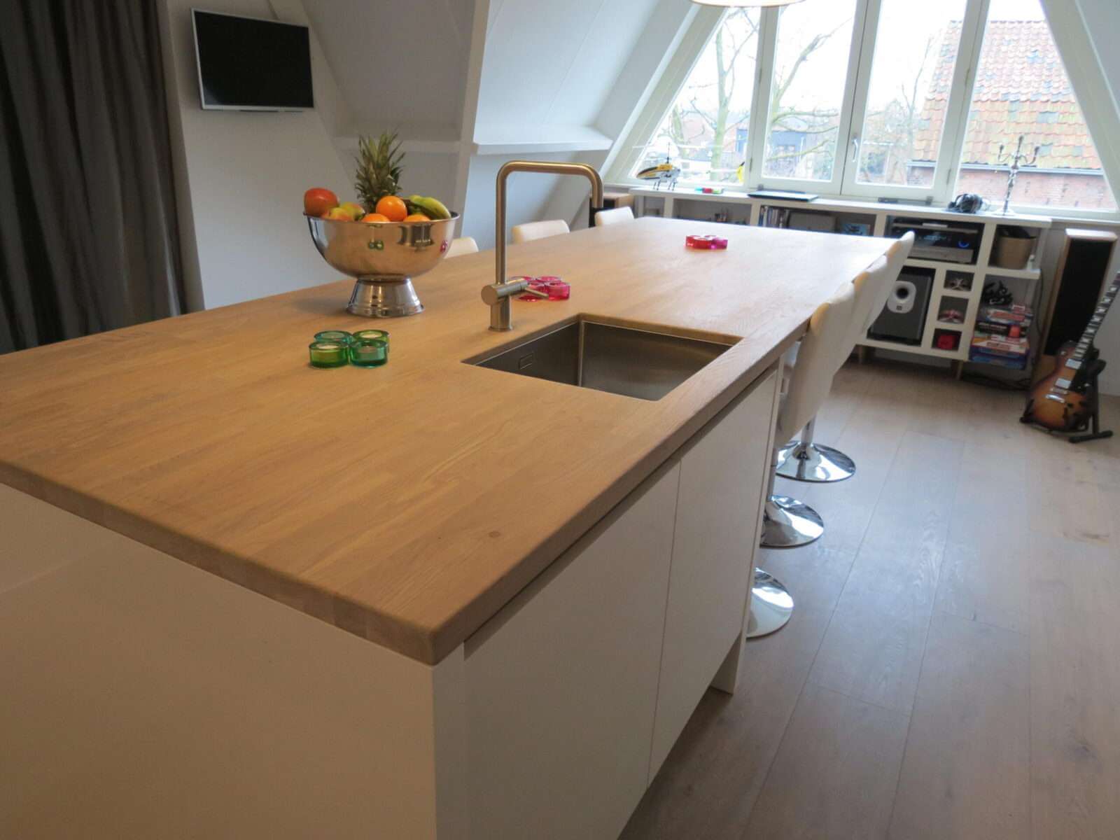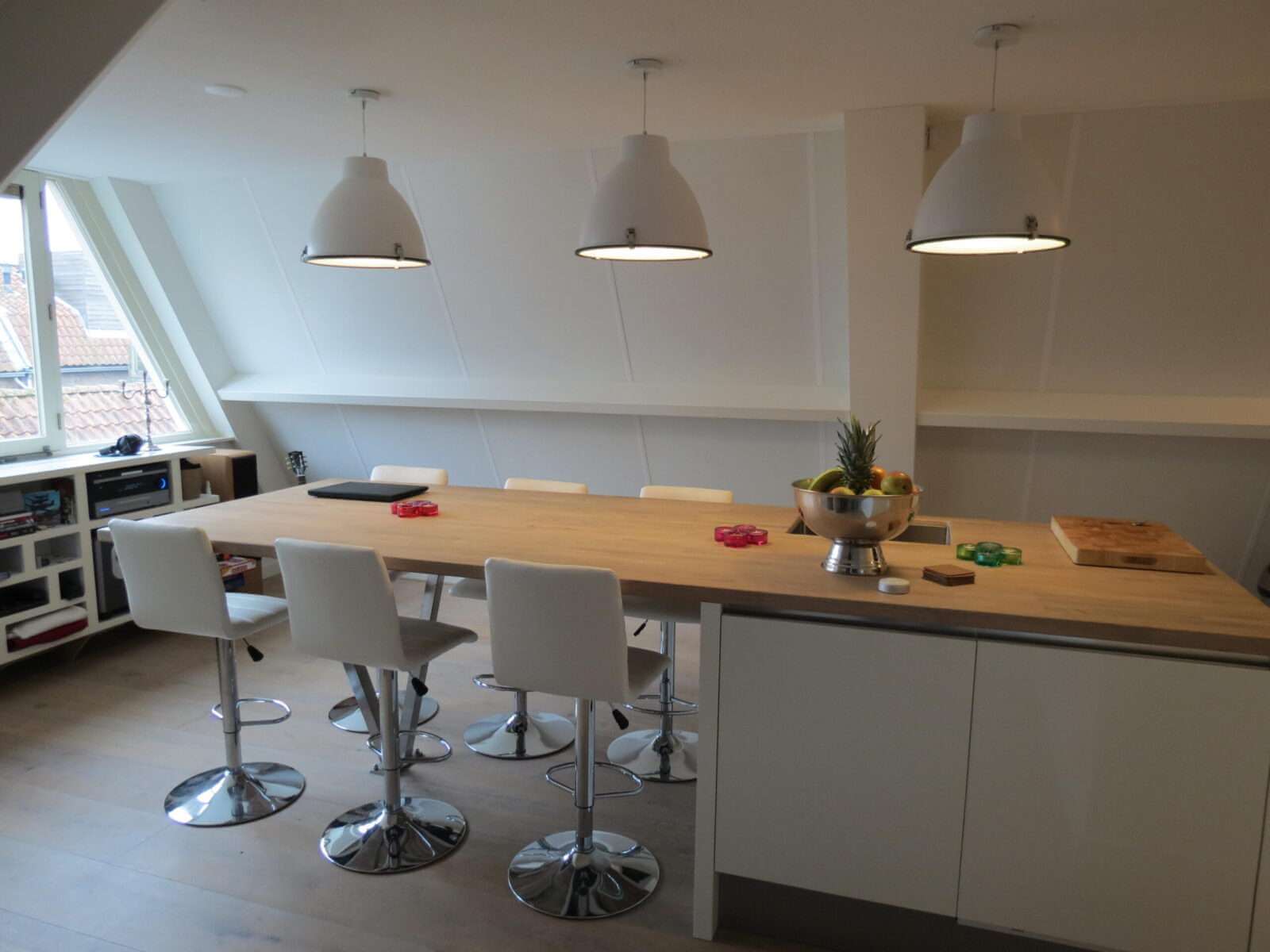 Derde verdieping: entree, hal met toegang tot ieder vertrek van de woning; gezellige lichte woonkamer met openslaande deuren naar het balkon; half open zeer mooie moderne woonkeuken met grote vaste eetbar, 5-pits gasfornuis met wokbrander, afzuigkap, vaatwasser en koelkast; 2 ruime slaapkamers; prachtige badkamer met douche en wastafel, apart toilet en was/cv hok met inloopkast. Ruim en beschut balkon op het zuiden.