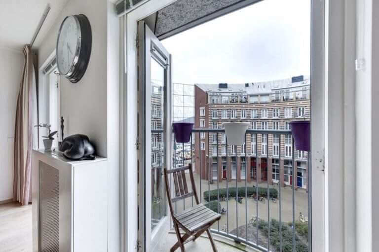 De 3 balkons, met openslaande deuren direct aan de woonkamer, zijn gelegen op het Zuidwesten en bieden doorkijk naar het water van de Ertshaven. Zomers vanaf 13:00 tot 20:00 zonlicht en zwemmen voor je eigen deur.