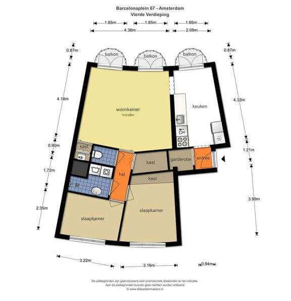 Prachtig 3 kamer (2 slaapkamer) appartement, met 3 balkons, een lift en een inpandige berging.