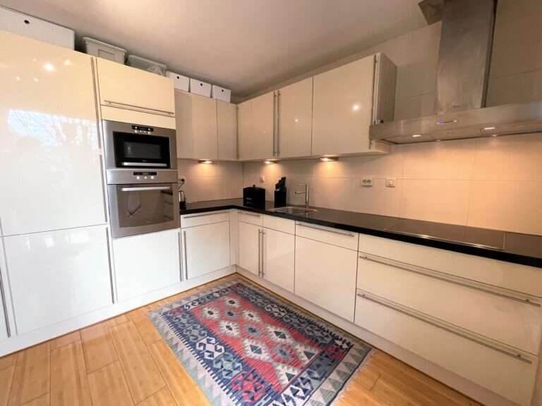 With the stairs you reach the 2nd floor and you enter the very spacious living room. The modern corner kitchen with dining area gives access to the balcony through a large sliding door.