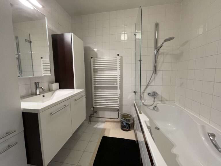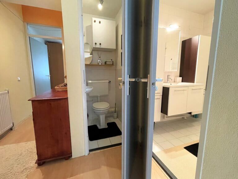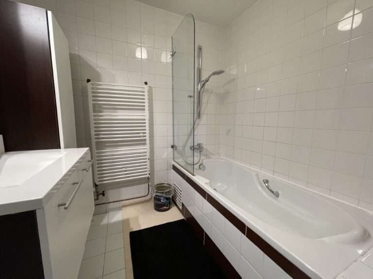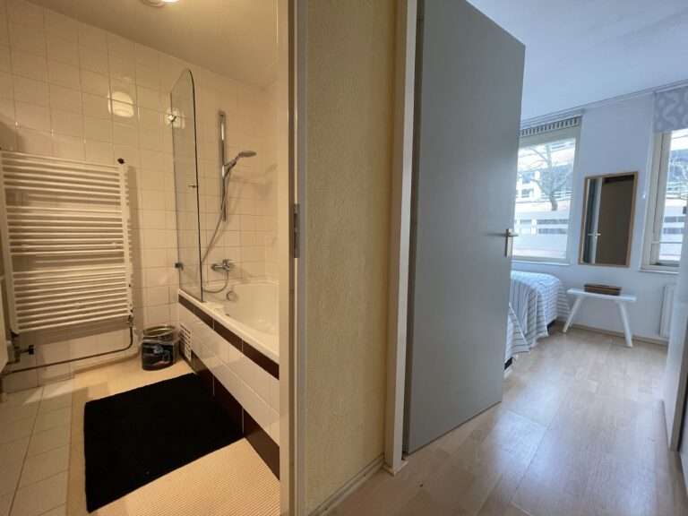 Ook de badkamer ligt op de eerste verdieping, welke is voorzien van een heerlijk ligbad, een wastafel, genoeg opbergruimte en een design radiator. Er is ook een apart toilet op deze etage.