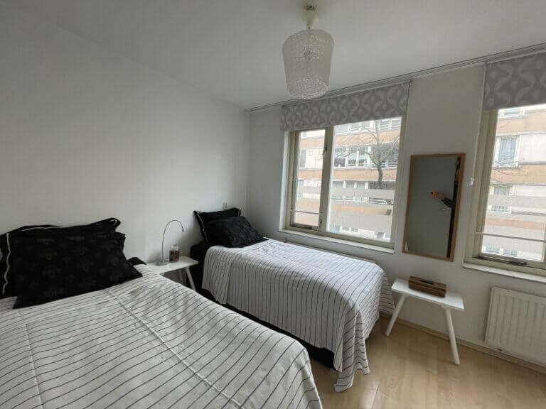 Bij binnenkomst op de eerste verdieping bevinden zich 2 ruime en lichte slaapkamers aan de voor en achterzijde van de woning.
