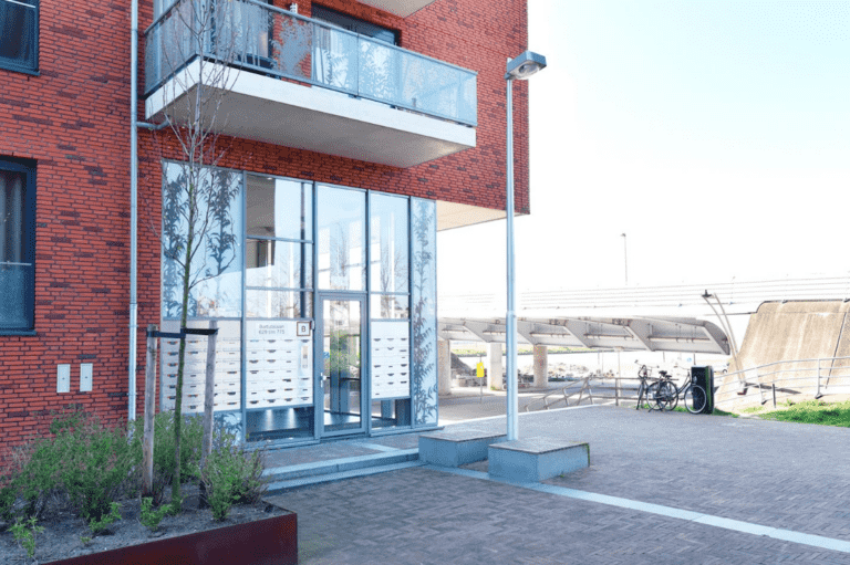 Afgesloten entree met intercom, ruime hal, trapportaal, lift. Toegang tot fietsstalling, eigen ruime berging en parkeerplaats in de ondergelegen parkeergarage.