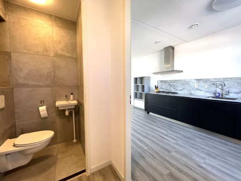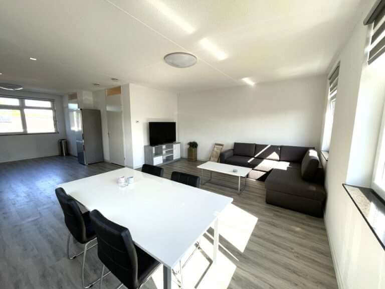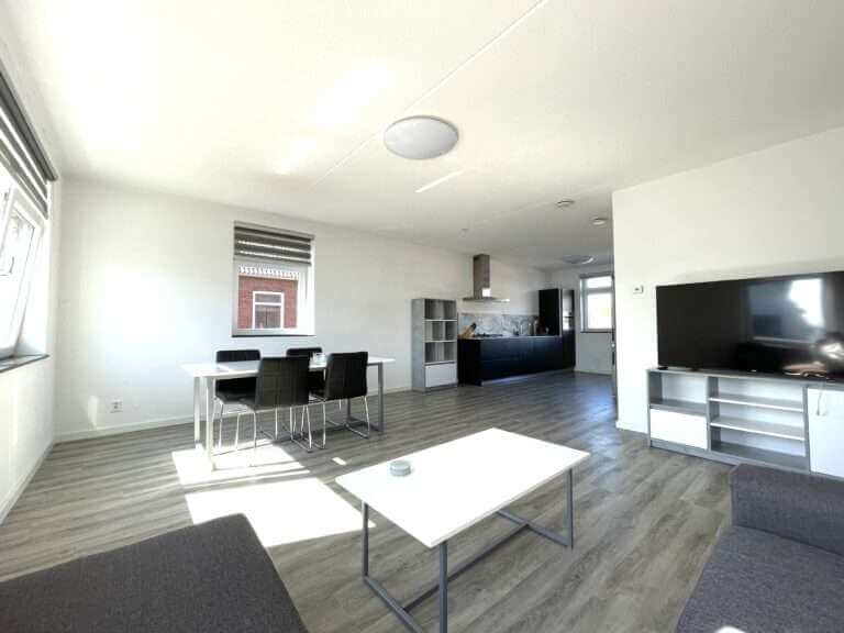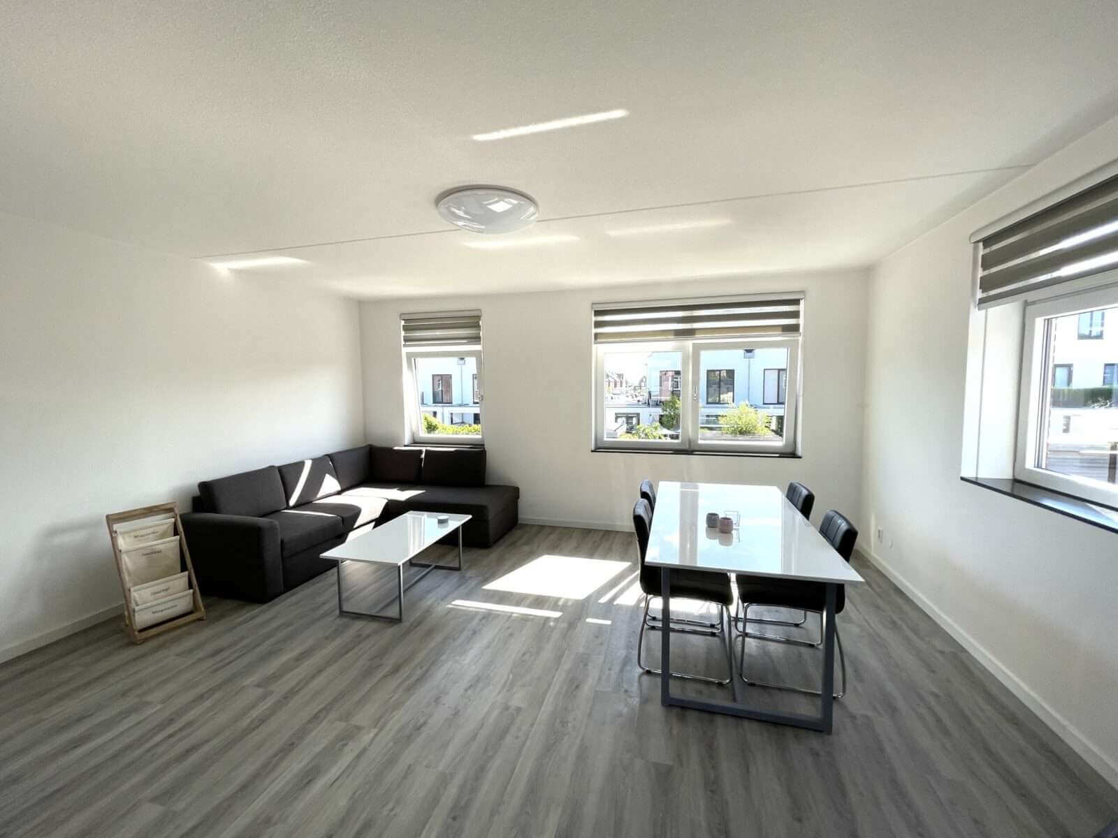 Gemeubileerde nieuwbouw 3 kamer (2 slaapkamer) hoek-maisonnette met groot buitenterras en privé berging op de begane grond.