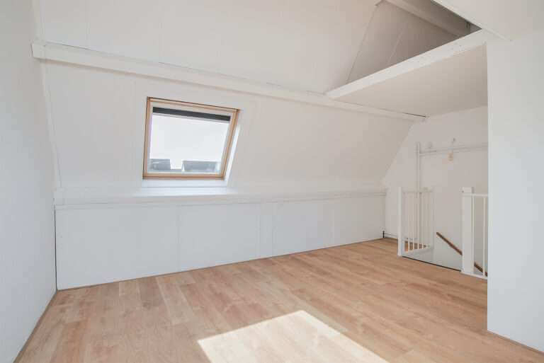 Ruime zolderverdieping met opstelplaats CV-combiketel, wasmachine en droger en 4e slaapkamer, voorzien van een dakkapel aan de voorzijde en een Velux dakraam aan de achterzijde. Bovengelegen vliering. Ook deze verdieping heeft een mooie nieuwe laminaatvloer.