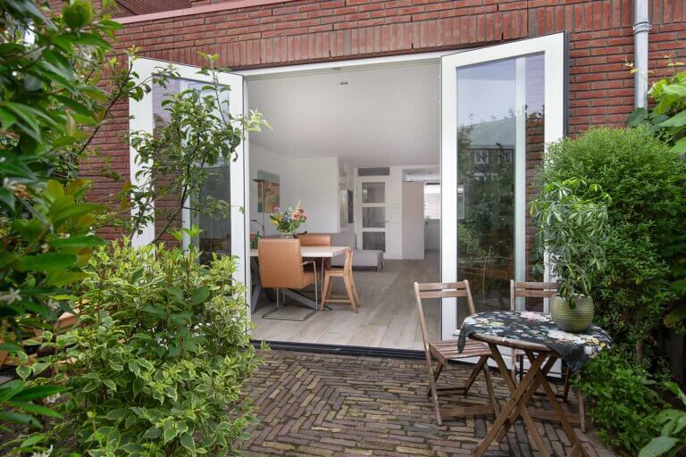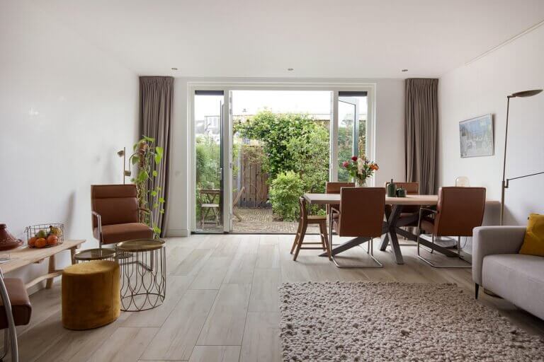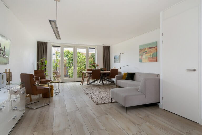 – Ruime living met bergkast en openslaande deuren naar de achtertuin,