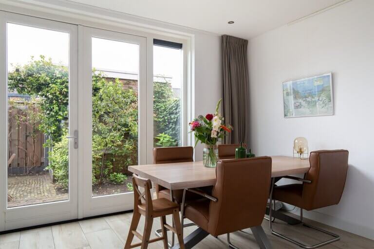 Haarlem te huur: Sfeervol, modern, gestoffeerd en uitstekend onderhouden tussenwoning met 4 slaapkamers, zonnige achtertuin met schuur, achterom en eigen parkeerplaats gelegen in een autovrije straat in de gewilde woonwijk ‘ De Remise’.