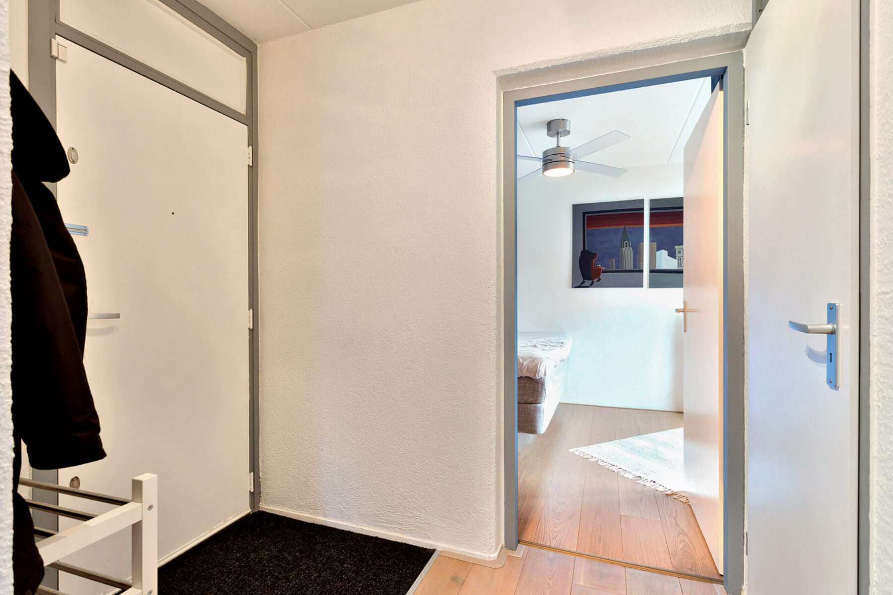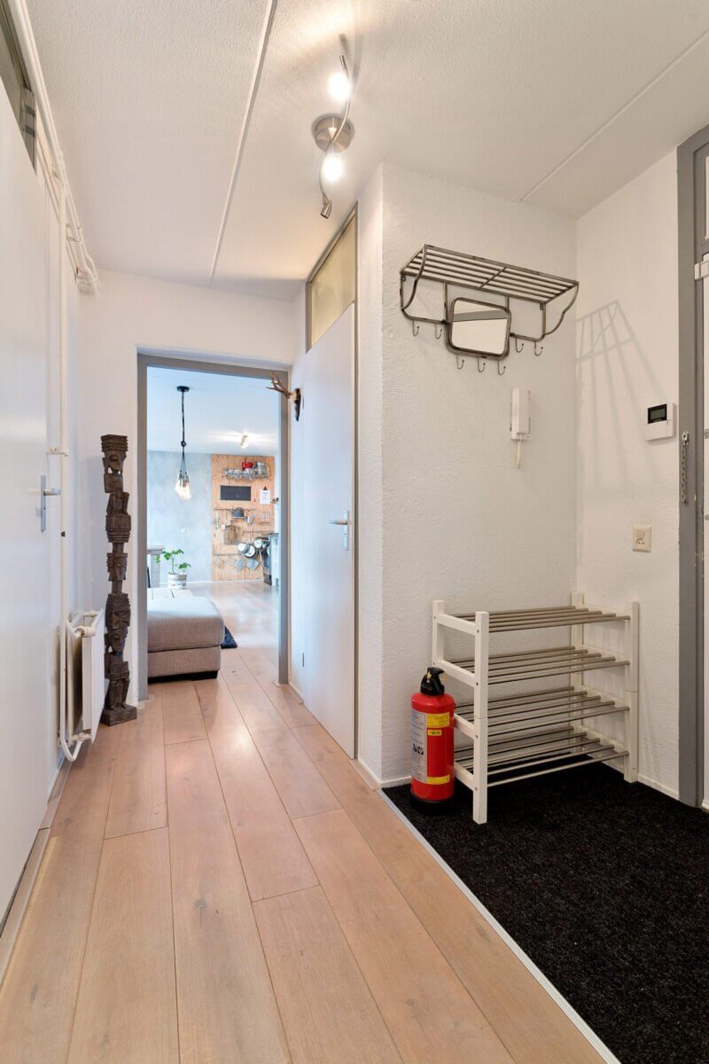 Via de gezamenlijke ingang met de postbussen bereik je met de trap de bovenste etage.