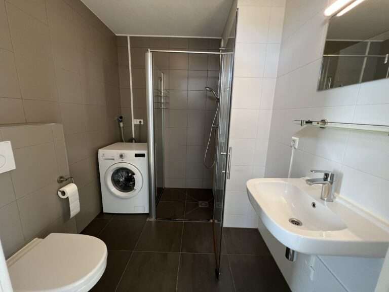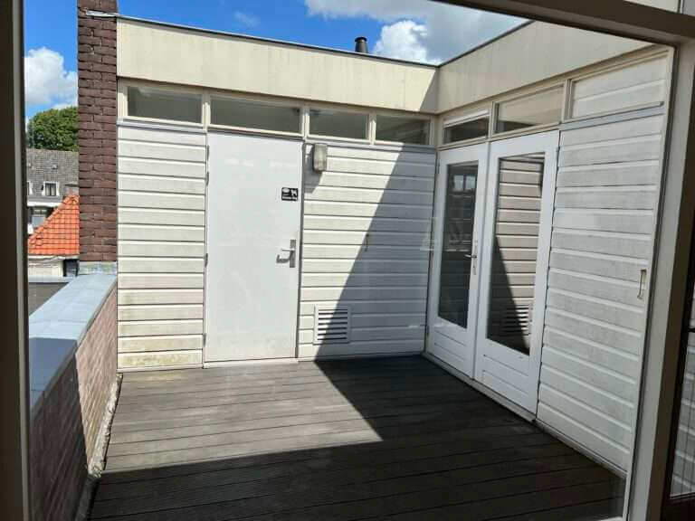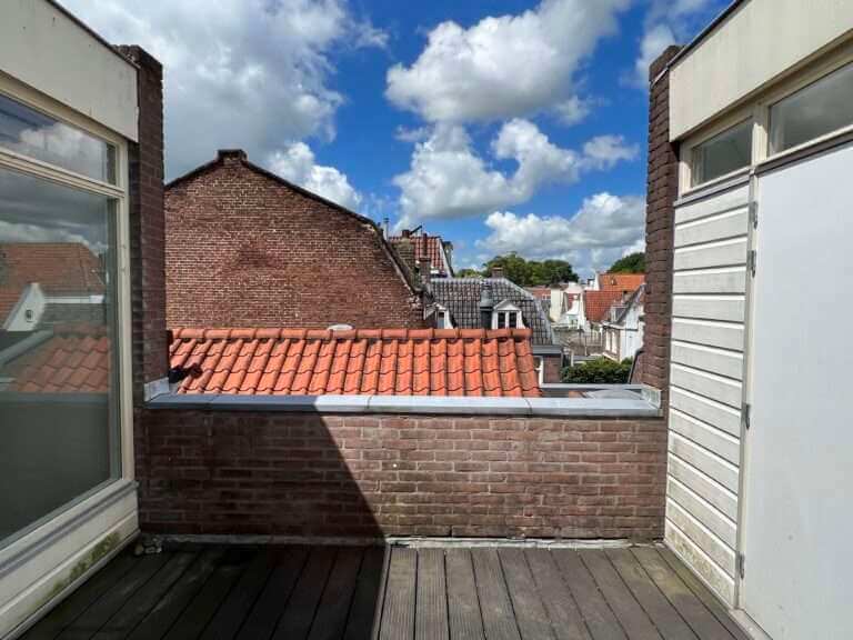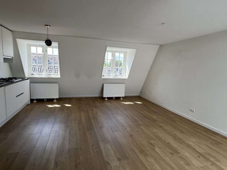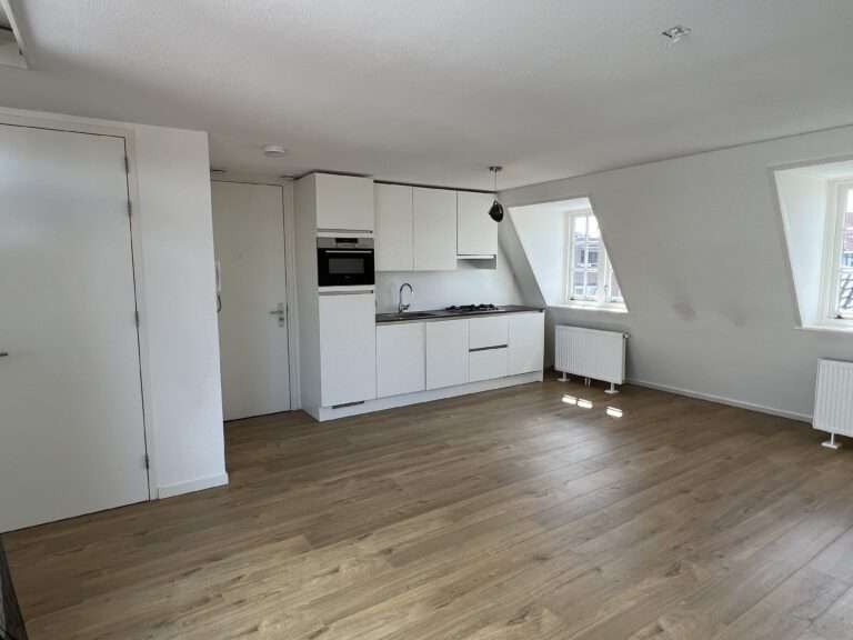 Overloop met toegangsdeur naar het appartement. Lichte woonkamer met lichtinval door 2 gezellige dakkapellen met open keuken en toegang tot het dakterras. Moderne badkamer met wastafel, douche en wasmachine. Schuifdeur naar de slaapkamer met vanuit de slaapkamer tevens toegang naar het dakterras middels openslaande deuren.