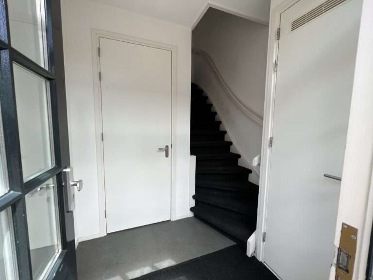 Begane grond: entree, hal, meterkast, gezamenlijke berging en trapopgang naar boven
