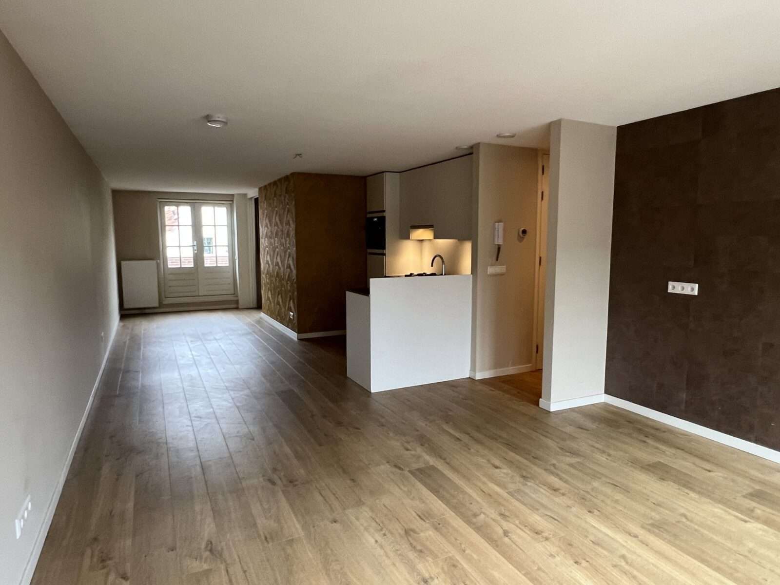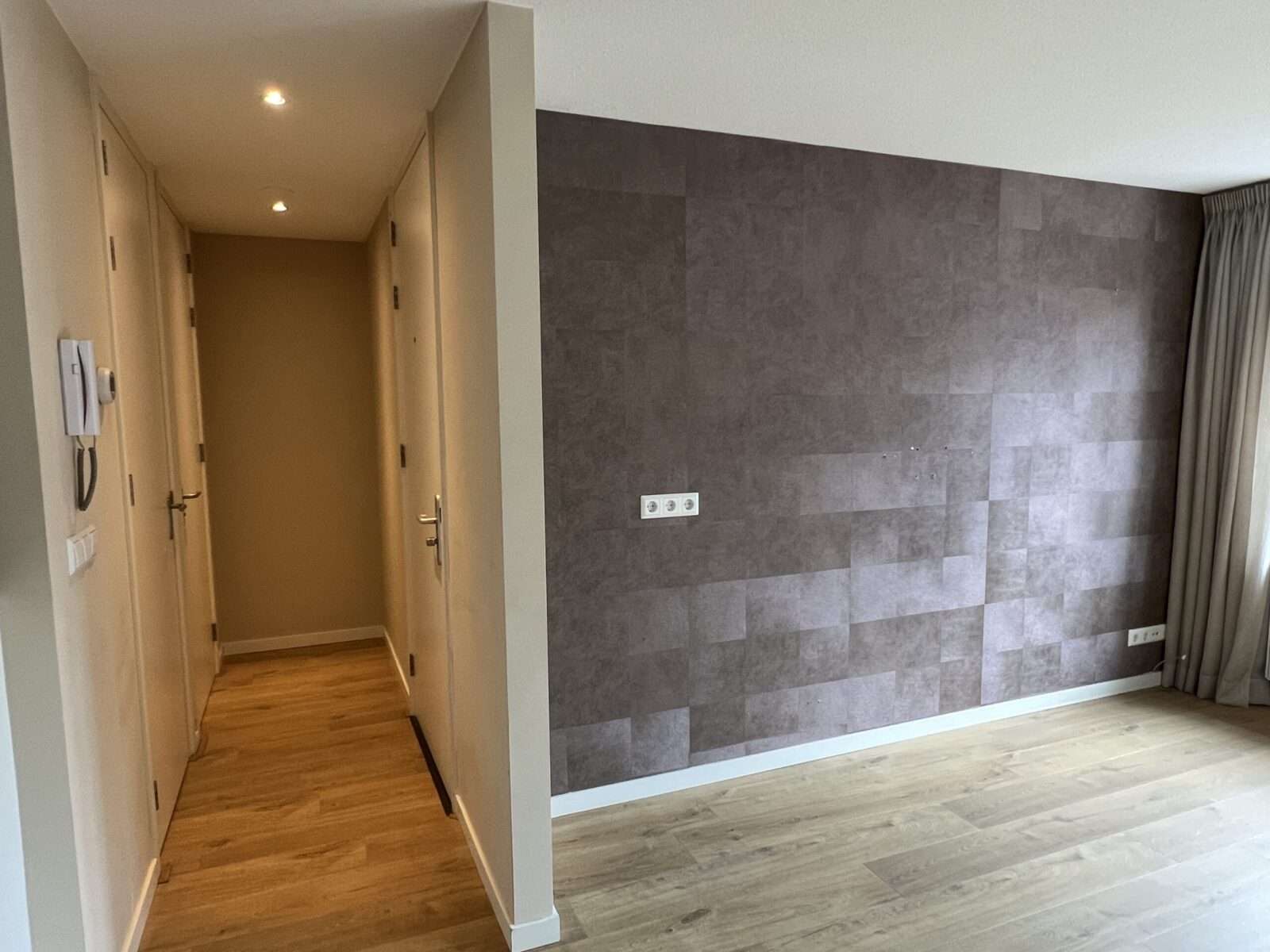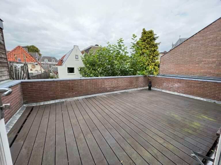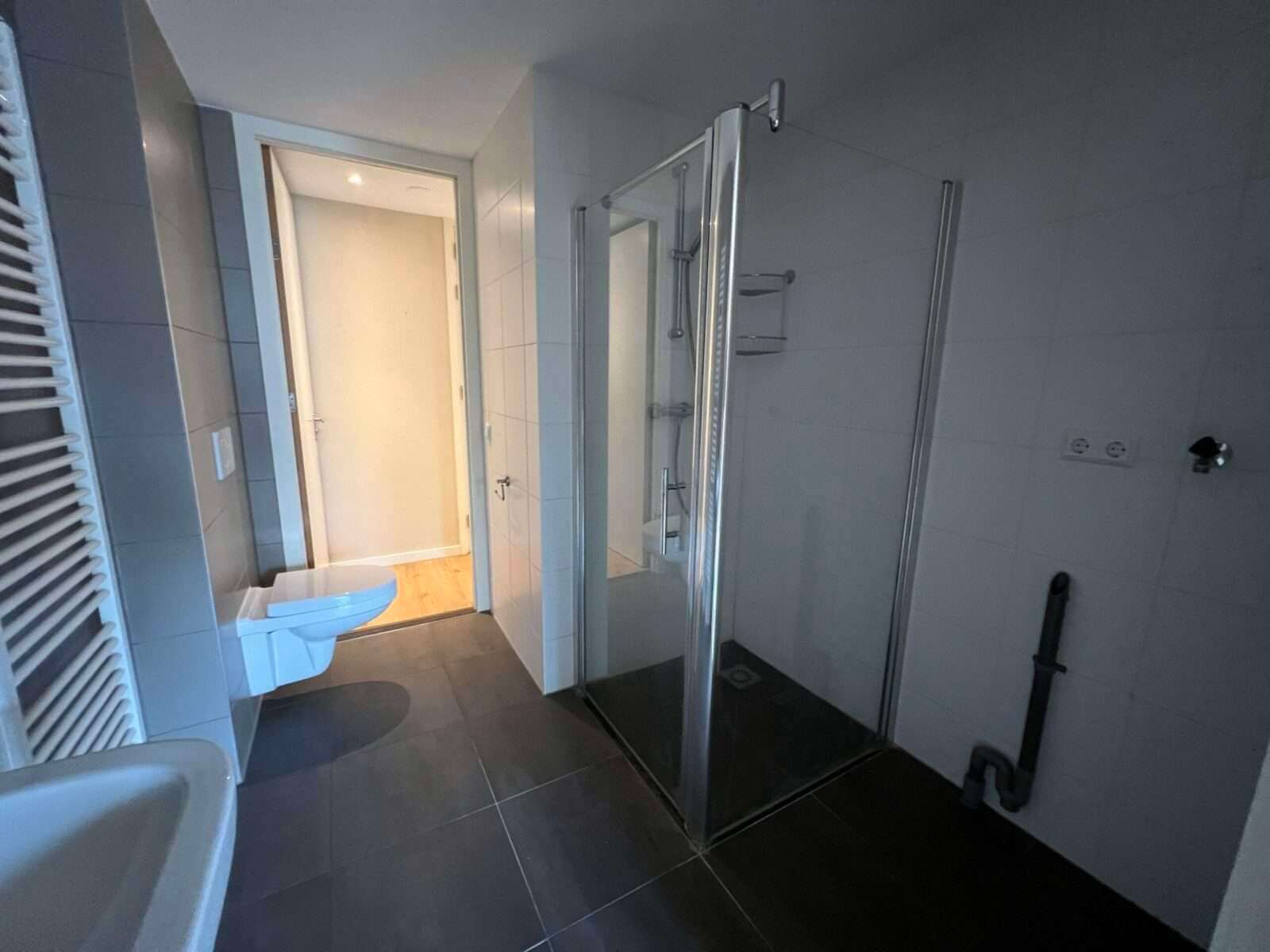 Overloop met trap naar tweede verdieping, eigen toegangsdeur naar het appartement. Lichte woonkamer met open keuken en eetgedeelte. Aan de achterzijde is er toegang tot het zeer royale dakterras (30m2) middels openslaande deuren. Toegang via schuifdeur naar de slaapkamer. Moderne badkamer met hangtoilet, douche, wasmachine aansluitingen en designradiator.