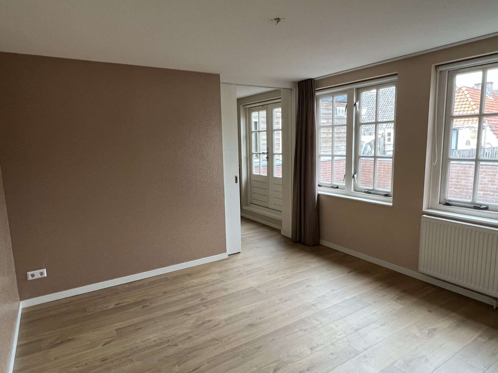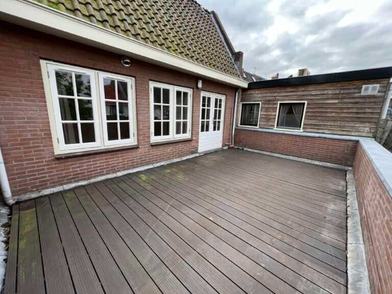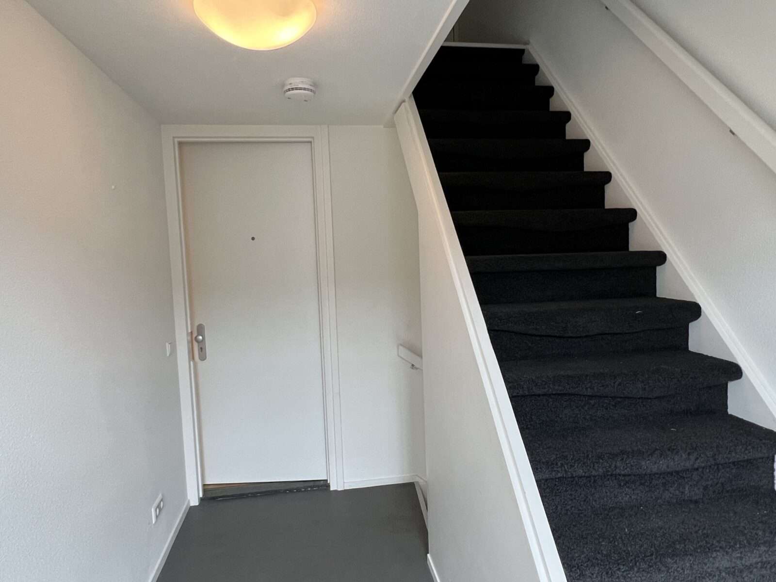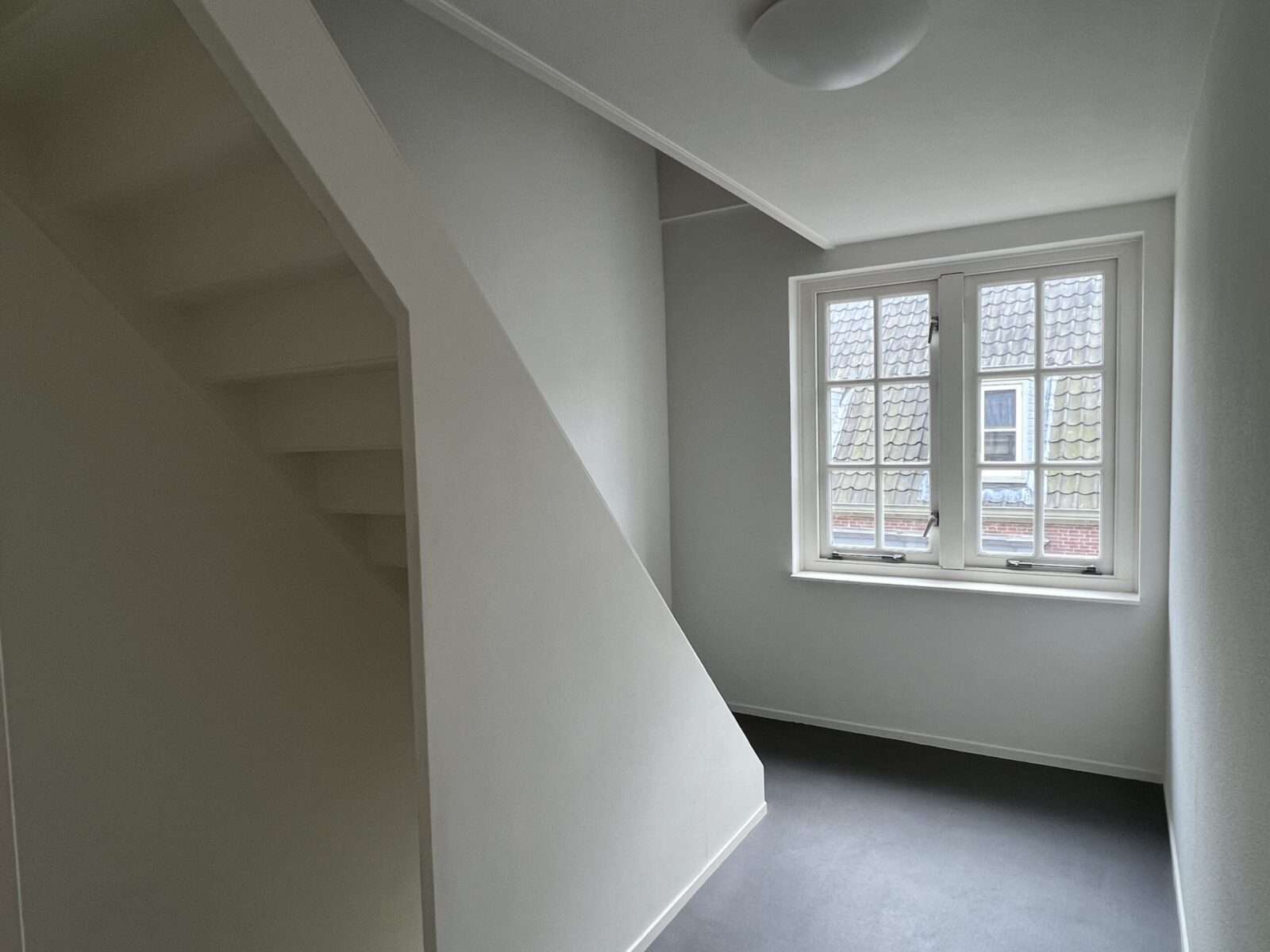 Overloop met trap naar tweede verdieping, eigen toegangsdeur naar het appartement. Lichte woonkamer met open keuken en eetgedeelte. Aan de achterzijde is er toegang tot het zeer royale dakterras (30m2) middels openslaande deuren. Toegang via schuifdeur naar de slaapkamer. Moderne badkamer met hangtoilet, douche, wasmachine aansluitingen en designradiator.