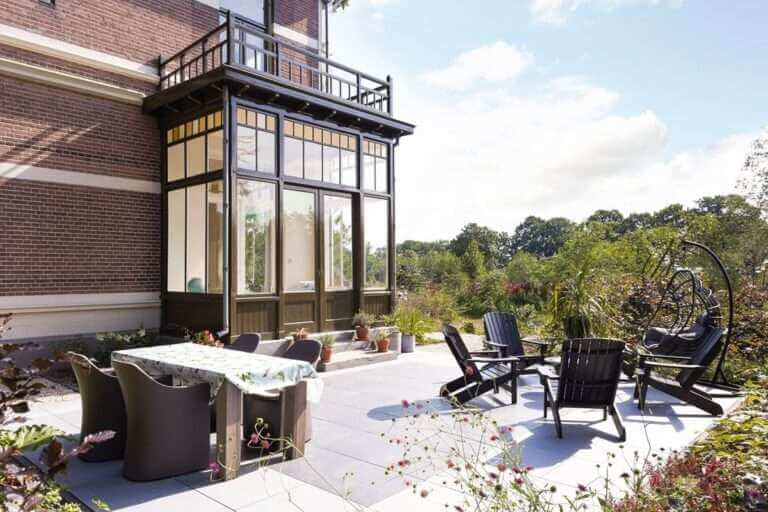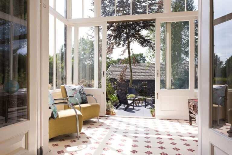 – De serre beschikt over openslaande deuren naar de tuin