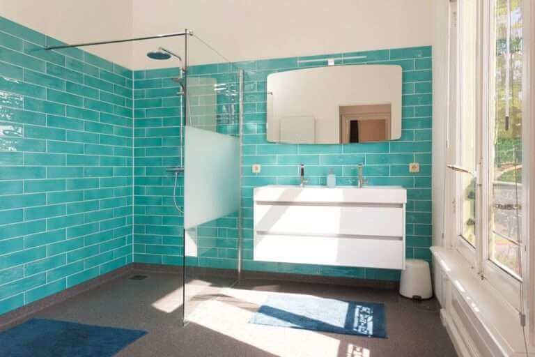 – Royale badkamer v.v. inloop douche en dubbele wastafel