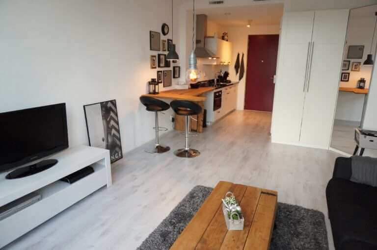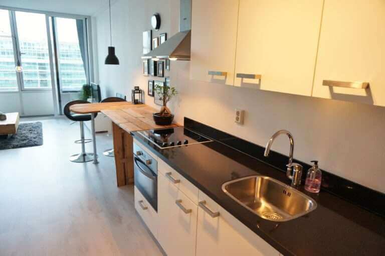 Dit studio-appartement is voorzien van een compleet uitgevoerde keuken, een ruim opgezette badkamer een fijne leefruimte welke meer dan genoeg ruimte biedt voor een tweepersoonsbed annex bank en een eetgedeelte.