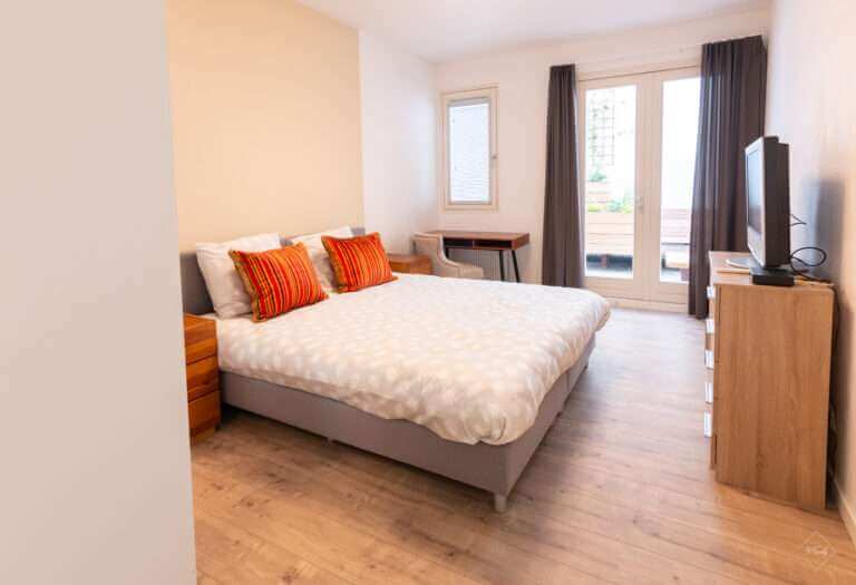De 2e slaapkamer is ongeveer 15 m2 groot. De slaapkamer biedt tevens toegang tot de patio en een en suite badkamer met inloopdouche en toilet.