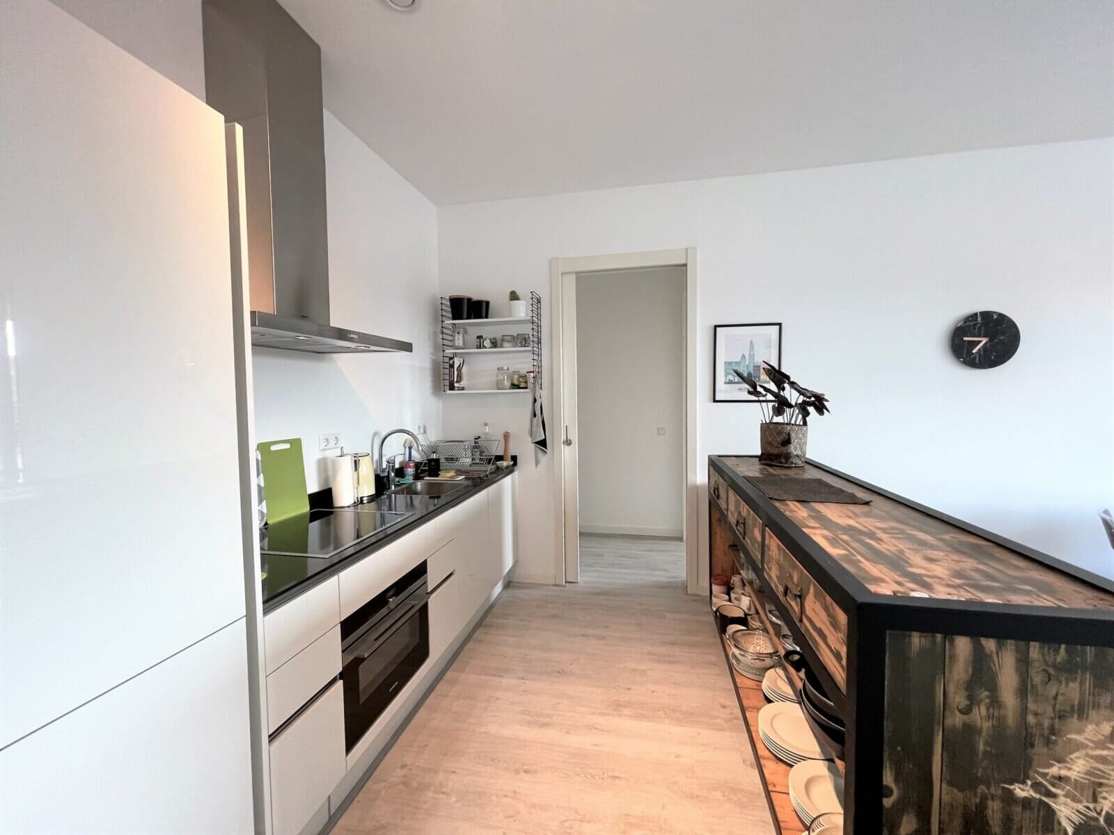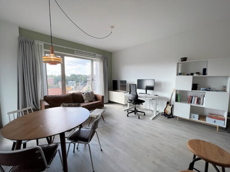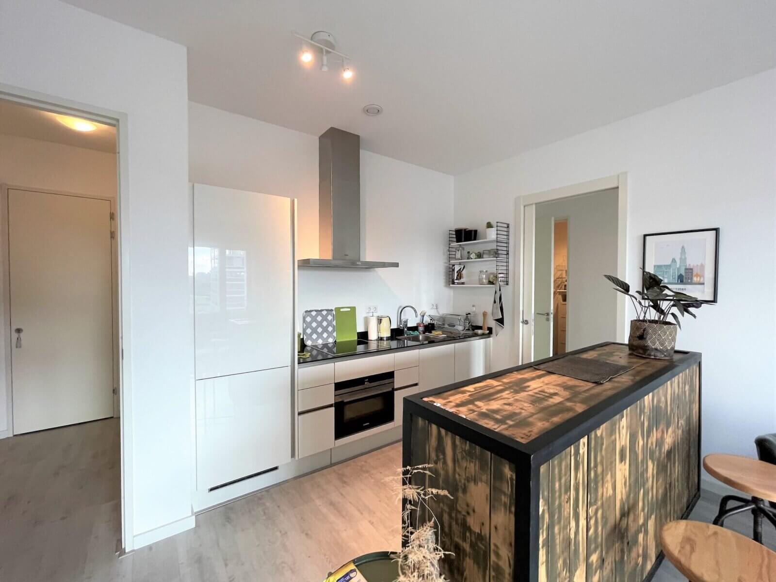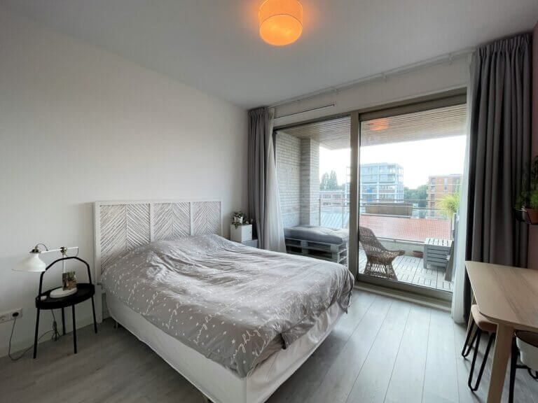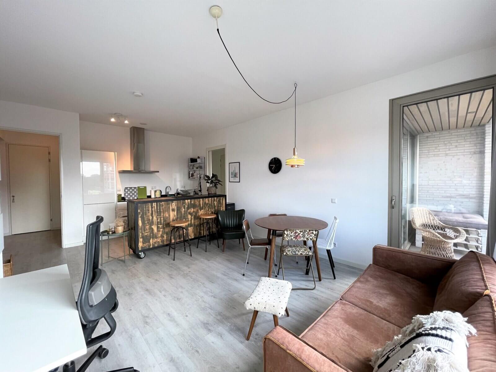 Gemeubileerde 2 kamer (1 slaapkamer) nieuwbouw appartement, met privé balkon, privé berging en privé parkeerplaats (tegen meerprijs) in de onder het gebouw gelegen garage.