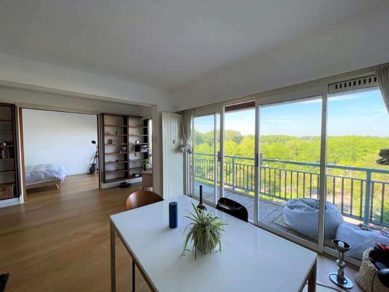 Modern verbouwd, ruim en comfortabel 1 slaapkamer (voorheen 3) kamer appartement met VRIJ uitzicht over het groen en de Sloterplas.