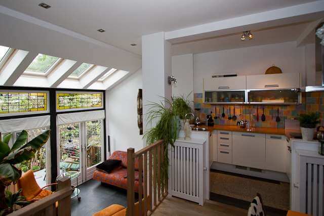 Verrassende tussenwoning aan de rand van het centrum van Gouda. Op loopafstand van winkels, basisschool en middelbare scholen (gymnasium, atheneum, ROC en hogeschool De Driestar), kinderspeelplaats, park en openbaar vervoer. Op 8 min van de snelweg A12 richting Den Haag/Rotterdam of Utrecht. Het centrum van Gouda, met zijn winkels, restaurants, theater en bioscoop, ligt op slechts 5 minuten. De Reeuwijkse Plassen, met allerlei recreatieve (watersport-) mogelijkheden zijn op slechts 7 minuten lopen in het verlengde van de Burgvlietkade.