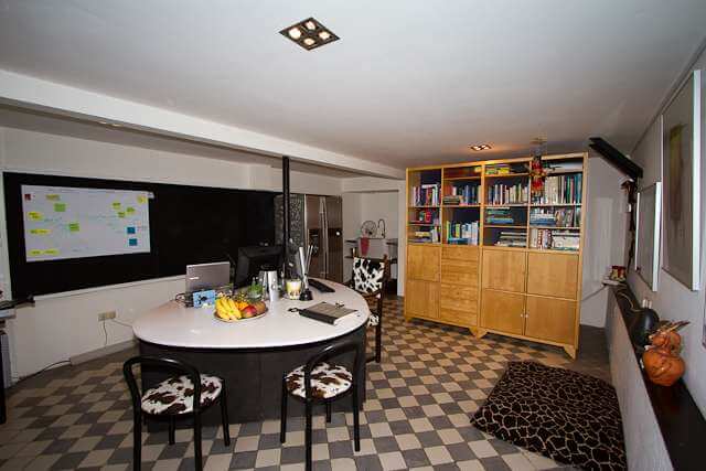 Vanuit de tuinkamer toegang tot de open kelderruimte welke nu in gebruik is als kantoorruimte. Achter in het souterrain is een separate bergruimte (koude kelder) en een infraroodsauna.