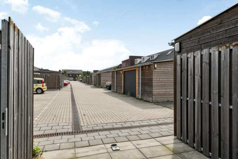 – extra brede elektrisch bedienbare poortdeuren aan de achterzijde tuin;