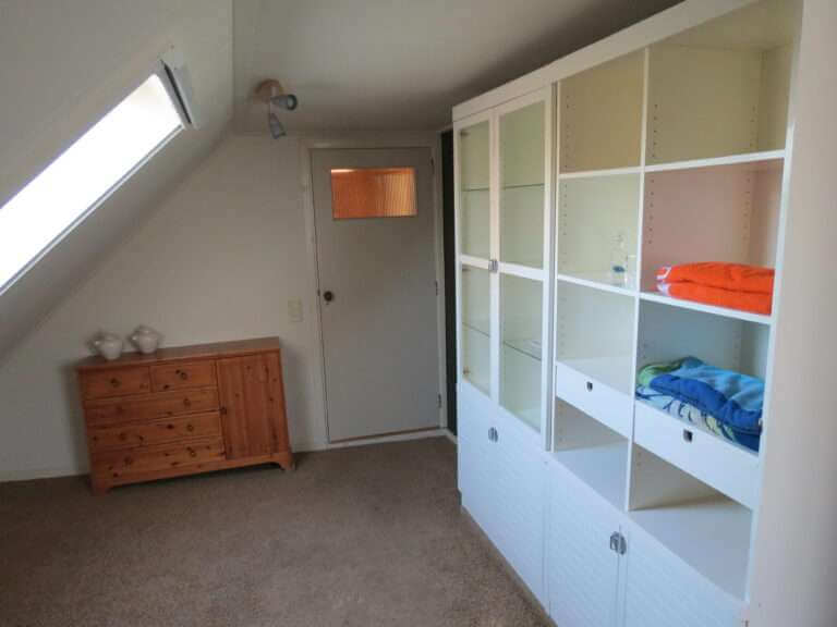Tuin met eigen zitje op het westen en parkeerplaats voor meerdere auto’s.