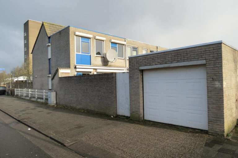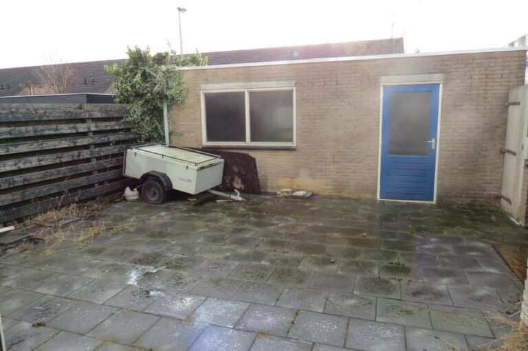 Voortuin met entree woning. Entree, hal met meterkast, toegang tot berging met wasmachine, wasdroger en grote vriezer, toilet met fonteintje, trapopgang en trapkast. Lichte en ruime woonkamer met grote raampartijen en deur naar de zonnige achtertuin. Via de tuin toegang naar de vrijstaande garage en achterom. Open keuken met eetbar en ingebouwde koelkast, gaskookplaat, afzuigkap en, koelkast
