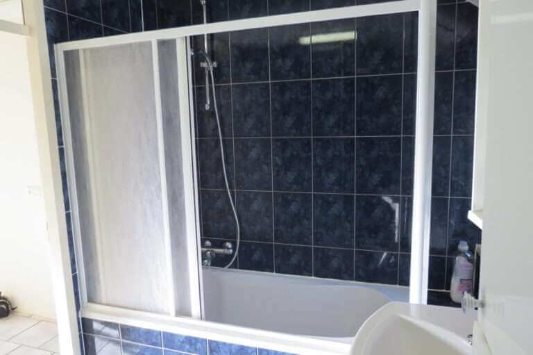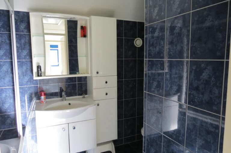 Overloop met vaste kast en toegang tot drie slaapkamers en de badkamer met ligbad inclusief douche, wastafelmeubel, en 2e toilet.
