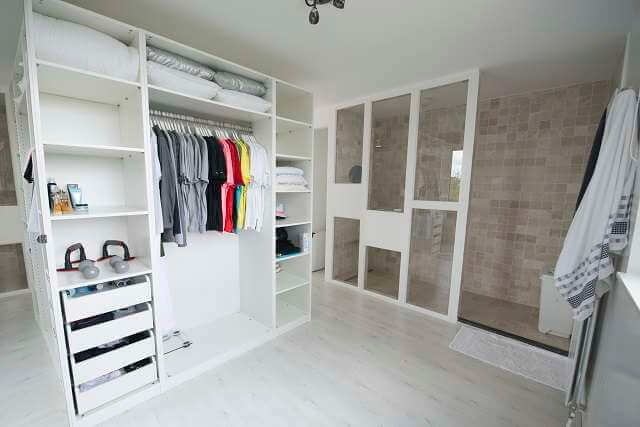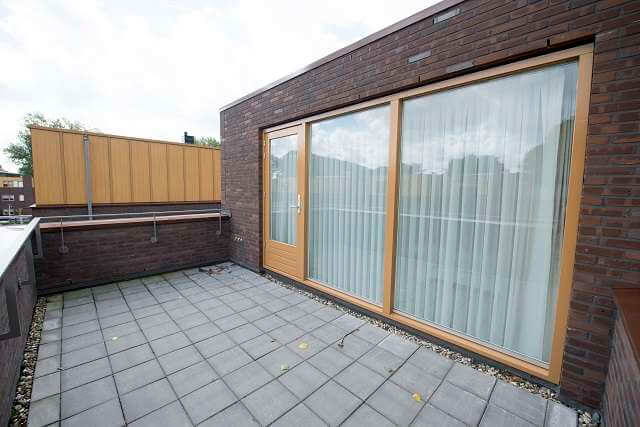 Tweede verdieping; ruime kleedkamer met douche gelegenheid, dakterras met prachtig uitzicht over het water en ruime lichte slaapkamer.