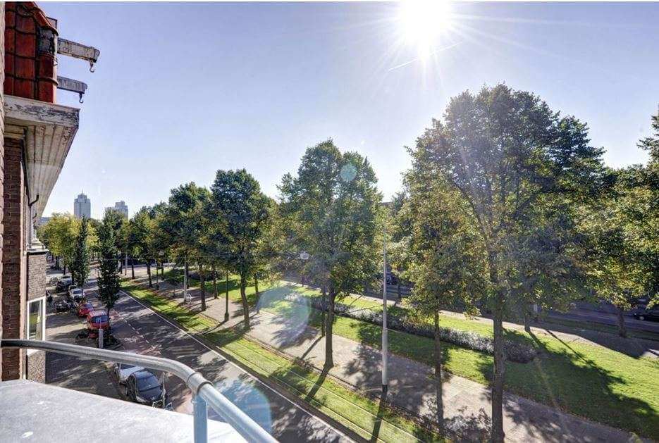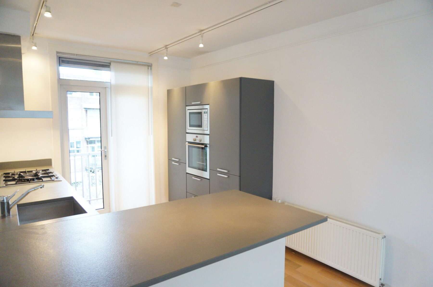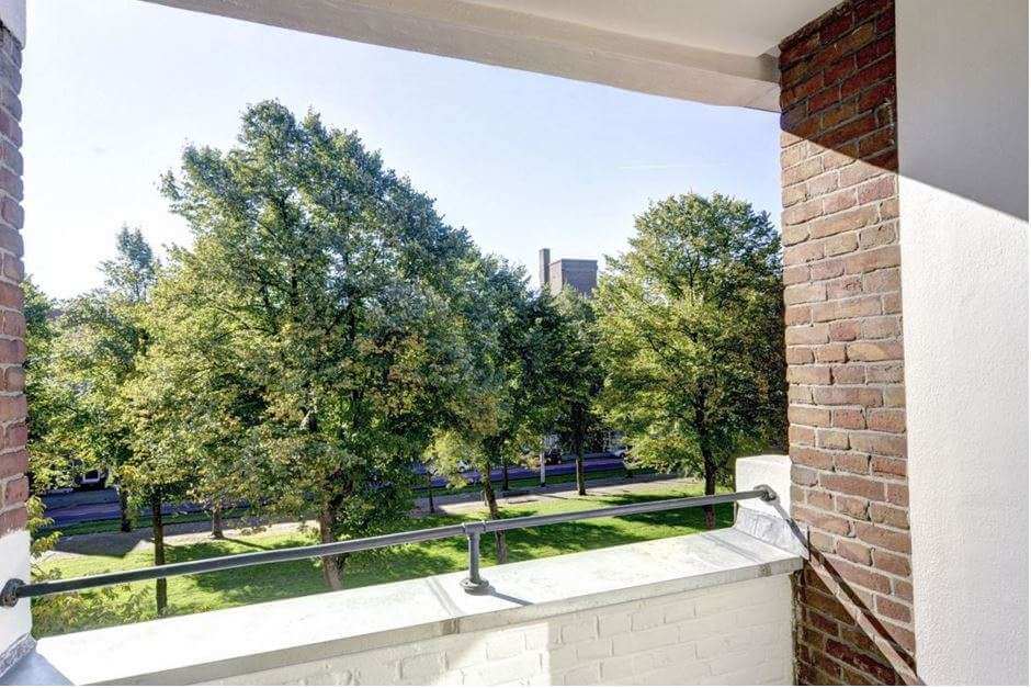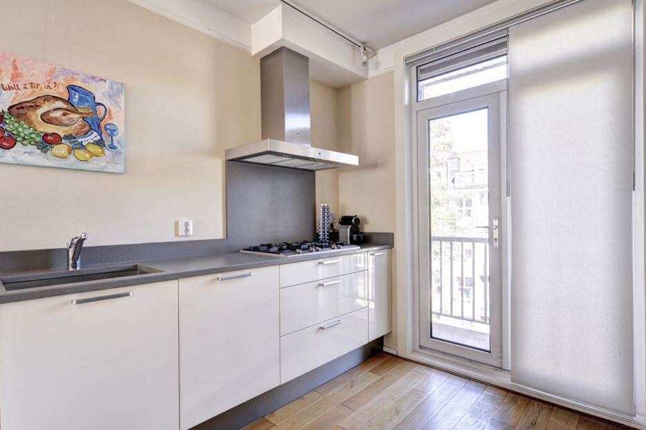 Toegang tot balkon vanuit de keuken en slaap/werkkamer. Aan de voorzijde van het appartement bevindt zich nog een tweede balkon.