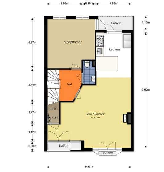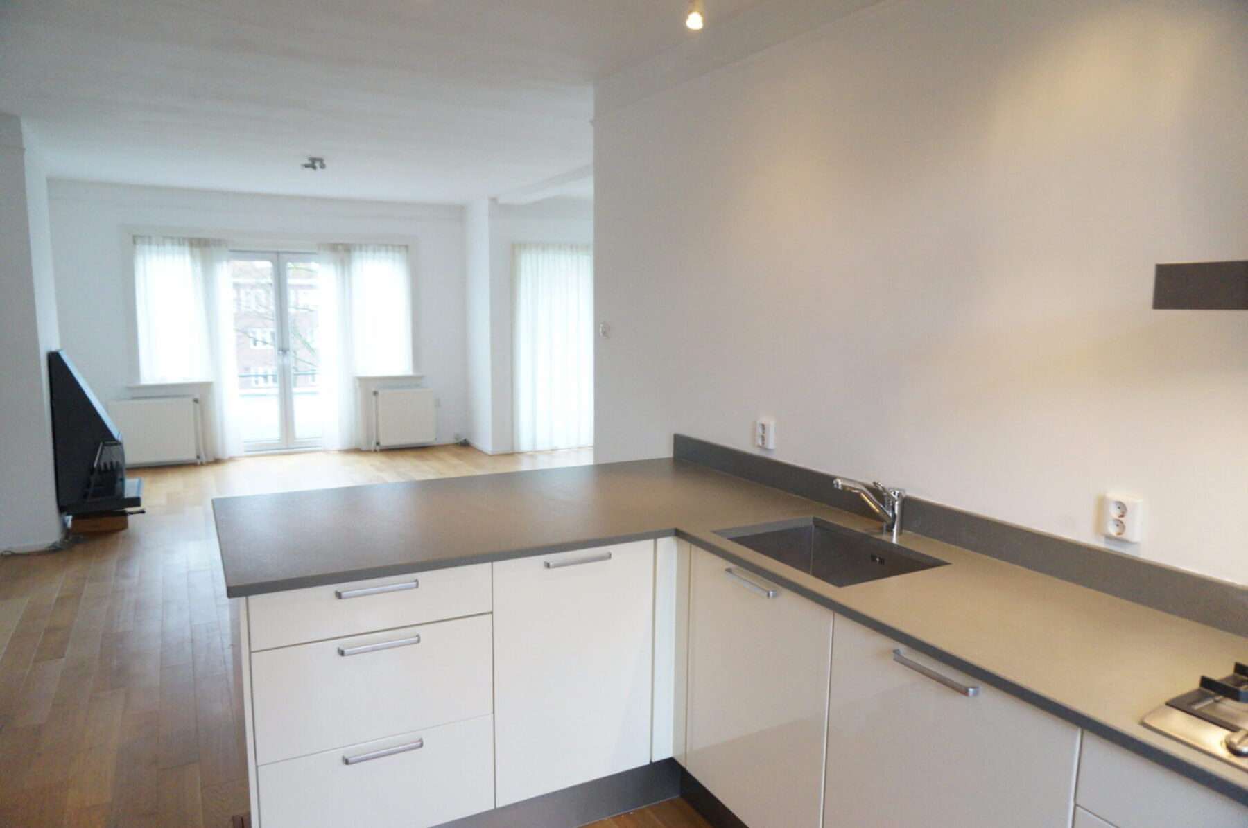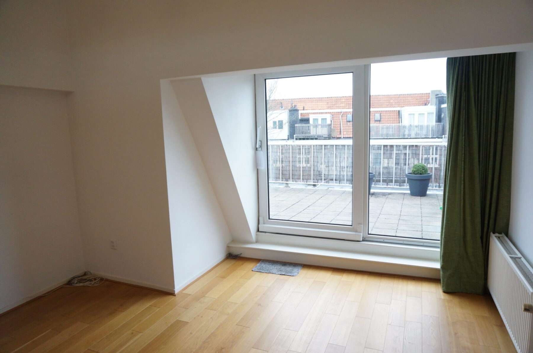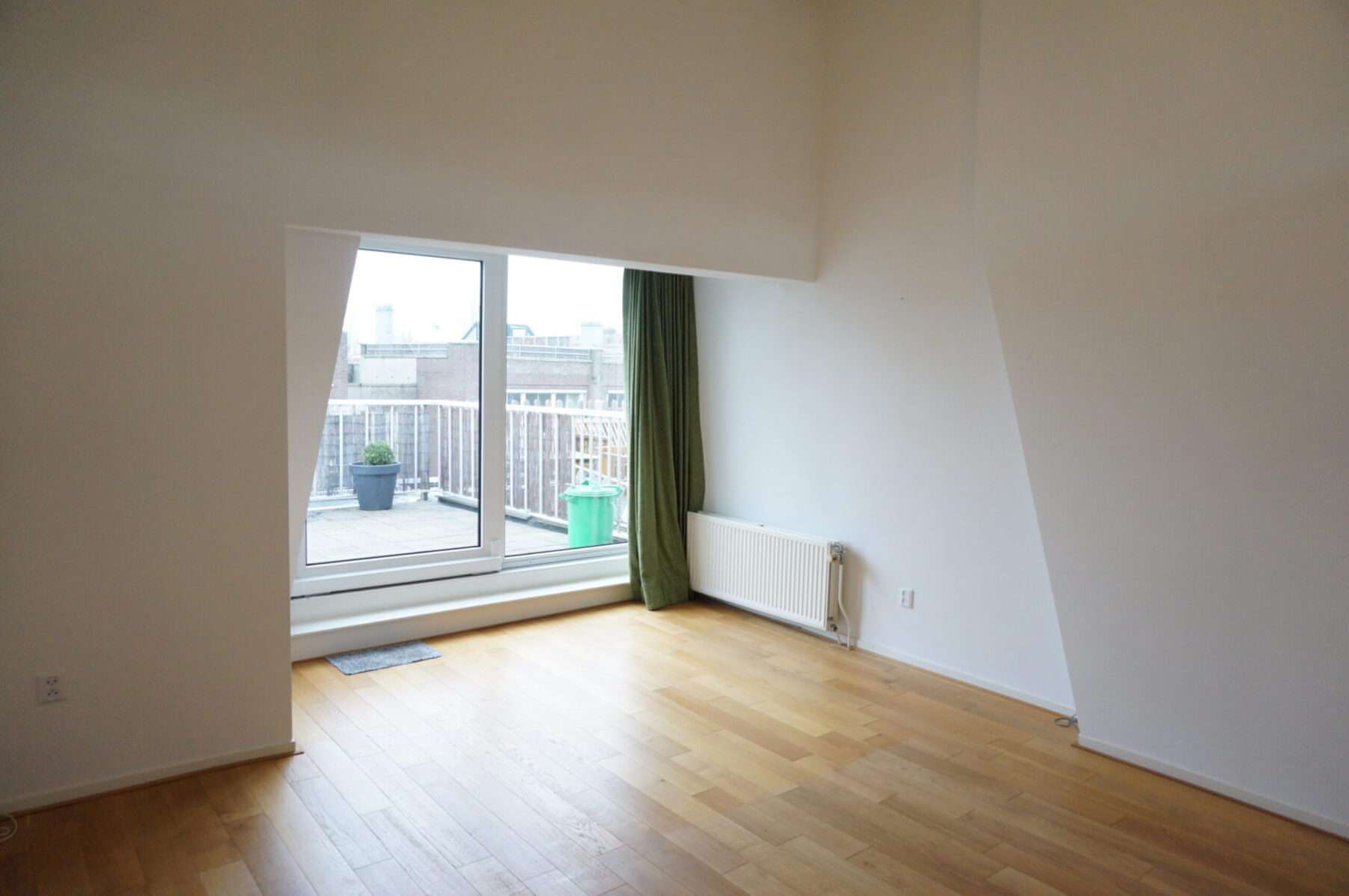 Toegang tot balkon vanuit de keuken en slaap/werkkamer. Aan de voorzijde van het appartement bevindt zich nog een tweede balkon.