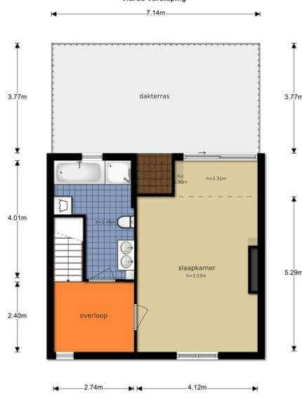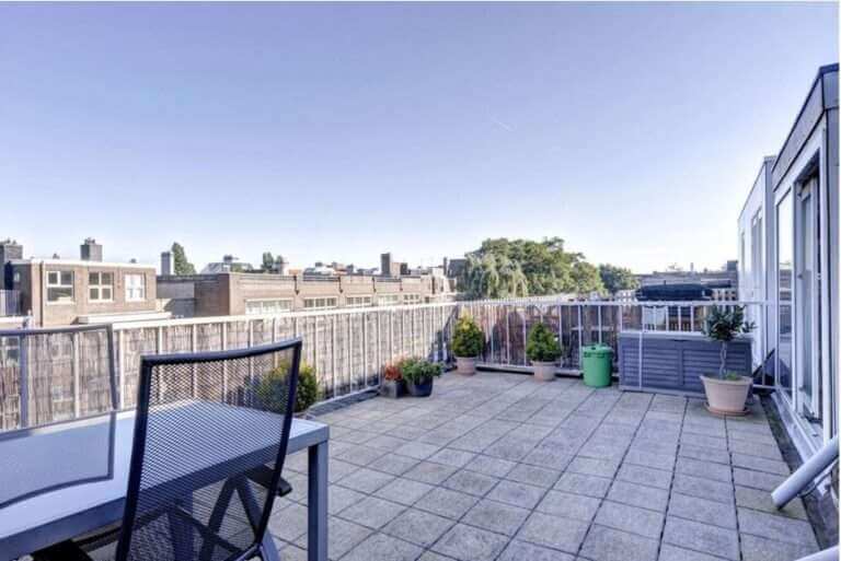 Tevens een zeer ruime master-bedroom met een slim gecreëerde walk-in-closet. Het dakterras van circa 27 m² ligt aan de achterzijde en is gesitueerd op het noord-westen.