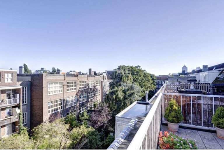 Tevens een zeer ruime master-bedroom met een slim gecreëerde walk-in-closet. Het dakterras van circa 27 m² ligt aan de achterzijde en is gesitueerd op het noord-westen.