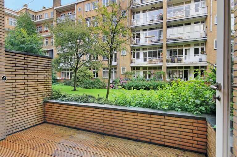 Prachtig geheel gerenoveerd gestoffeerd appartement van ca. 126 m² gelegen op de begane grond en in het souterrain, met een heerlijk terras op het zuiden (ca. 7 m²) dat uitzicht biedt op de fraaie binnentuin.