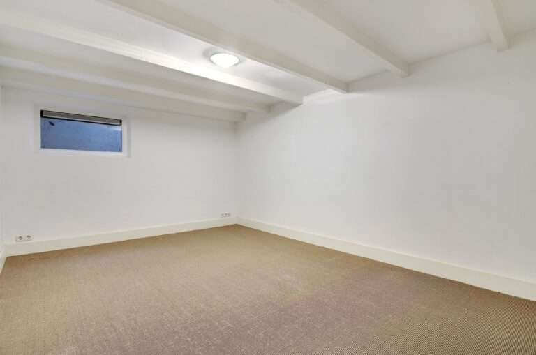 Souterrain: gang, ruime slaapkamer met douche en vaste wastafel. Berging met opstelling voor wasmachine en droger.