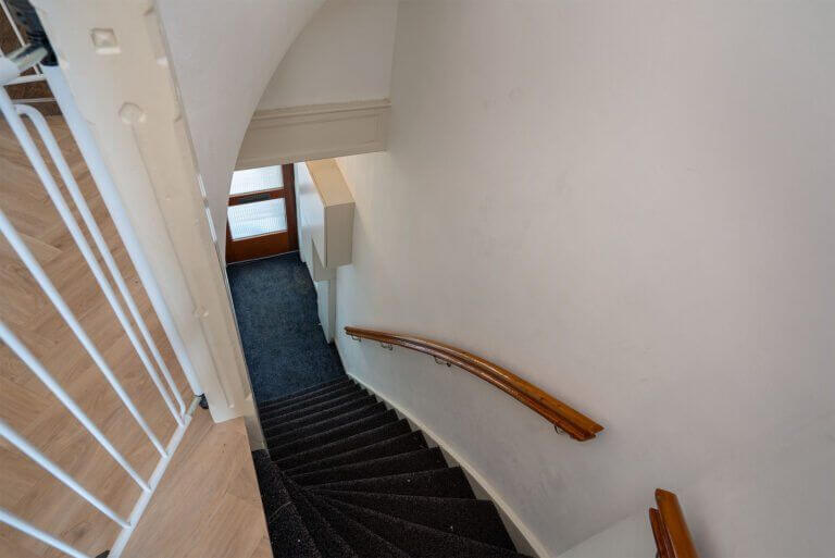 Vanuit de (gedeelde) voortuin te bereiken royale kelderruimte op stahoogte.