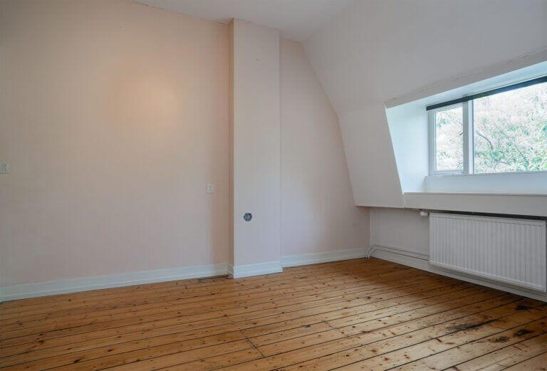 overloop met lichtkoepel, inbouwkast voorzien van de stookruimte met c.v.-combiketel, slaapkamer 1 (ca. 6 m2), slaapkamer 2 met dakkapel en vaste wastafel (ca. 18 m2), slaapkamer 3 met toegang naar het 2e dakterras (ca. 15 m2), nette badkamer met ligbad-/douchecombinatie, vaste wastafel en toilet.