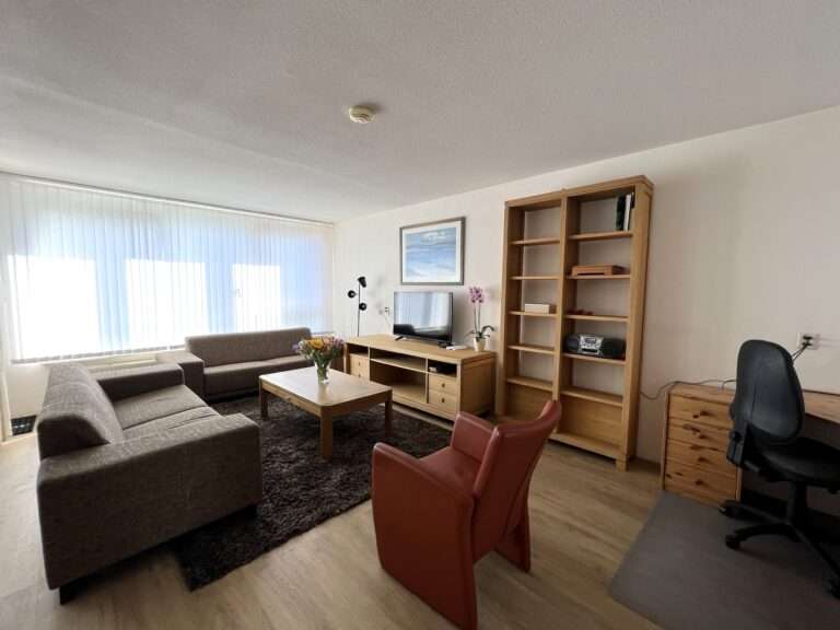 Gemeubileerd 3 kamer (2 slaapkamer) appartement met balkon en berging.