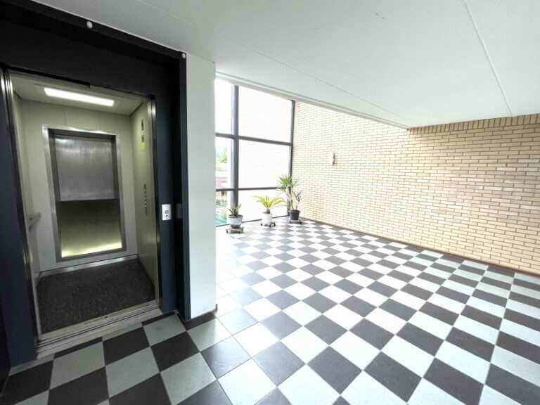 Het appartement ligt op de eerste verdieping en is ook bereikbaar per lift.