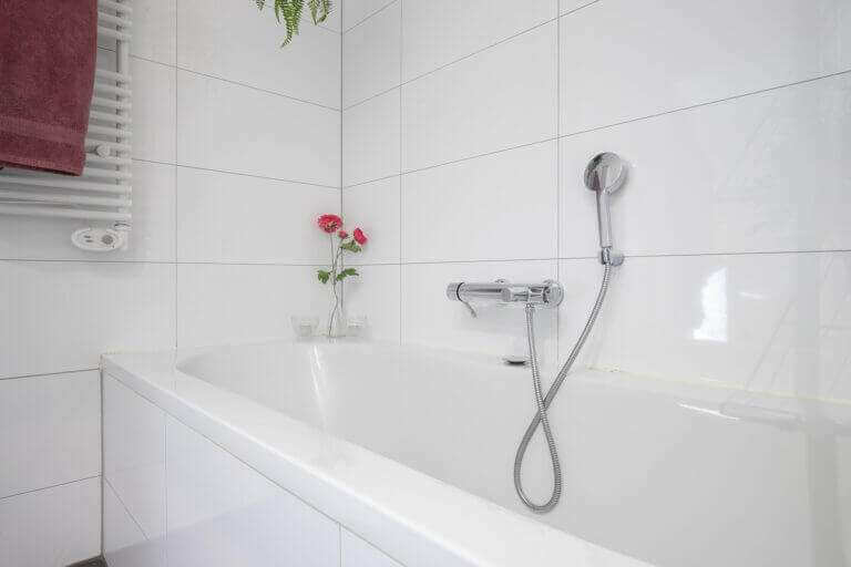 Ook op deze etage is één van de slaapkamers. Vanuit deze charmante slaapkamer kun je de tuin betreden via de openslaande deur. Er is hier tevens een inloopkast. De eerste badkamer is ook gelegen op de begane grond. Deze is voorzien van dubbele wastafel, ligbad, toilet, inloopdouche en wastafelmeubel.