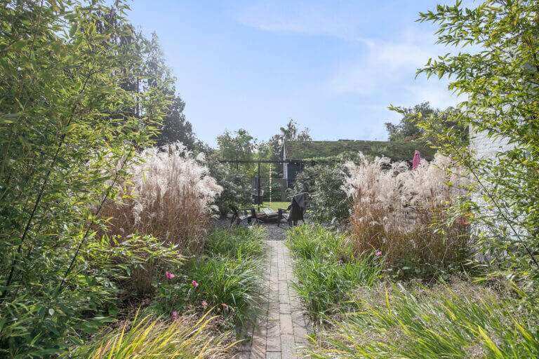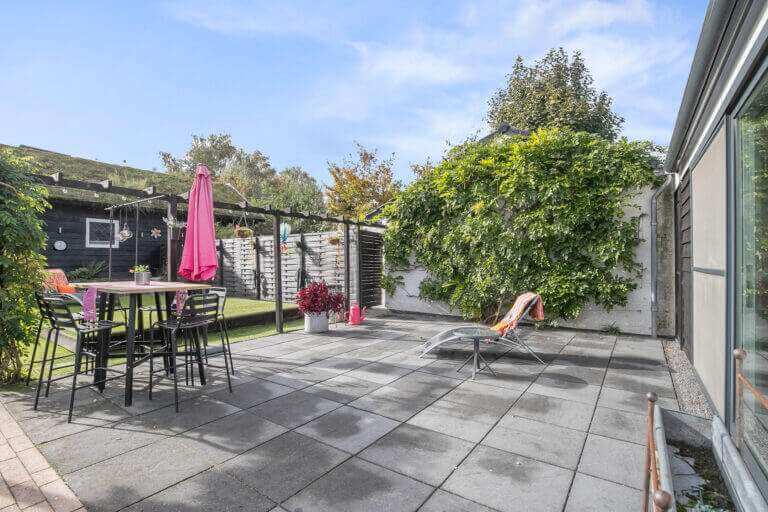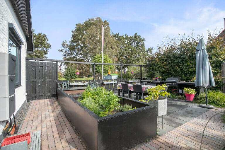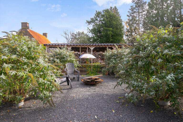 De zeer ruime tuin is te betreden via de schuifdeuren vanuit de woonkamer, of via de slaapkamer op de begane grond. De tuin is rondom en heeft verschillende plekken waar je heerlijk kunt zitten en genieten van de rust. Er is een ruim terras met barbecue, een vuurkorf en tevens een buitenkeuken met wateraansluiting en wasbak.